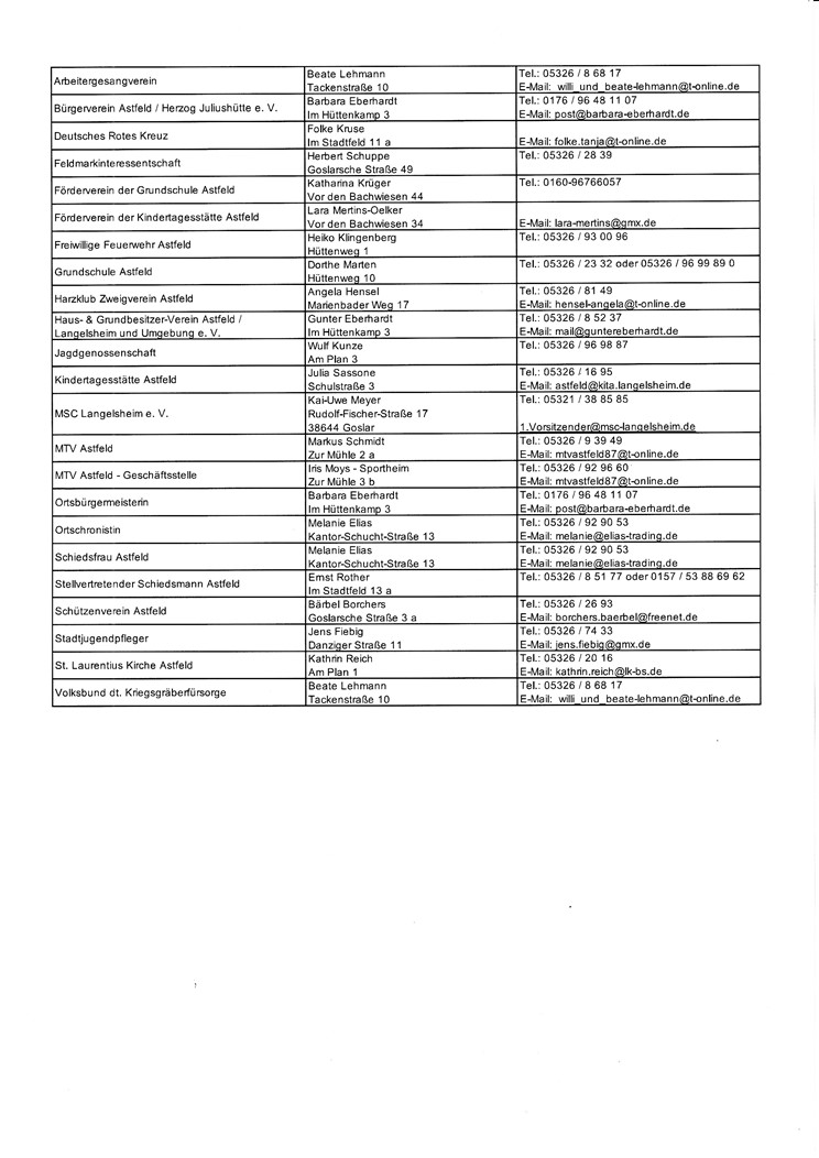 Auf diesen Seiten möchten wir allen interessierten Bürgern ein paar wichtige Informationen, wie z. B. die Kontaktdaten zu unserem Ortsrat, und auch Hinweise zu aktuellen Aktivitäten in und um Astfeld und Herzog-Juliushütte geben.